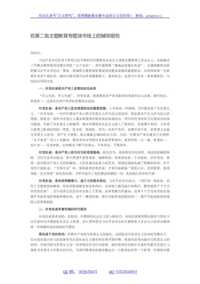 / 在第二批主题教育专题读书班上的辅导报告