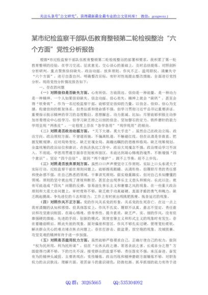 / 某市纪检监察干部队伍教育整顿第二轮检视整治“六个方面”党性分析报告