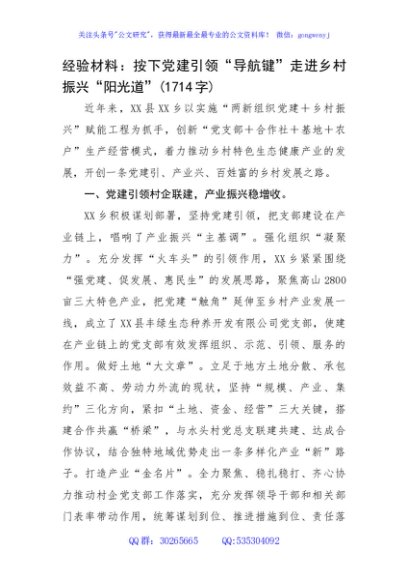 / 经验材料:按下党建引领“导航键”走进乡村振兴“阳光道”