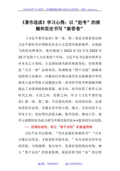 / 《著作选读》学习心得:以“赶考”的清醒和坚定书写“新答卷”