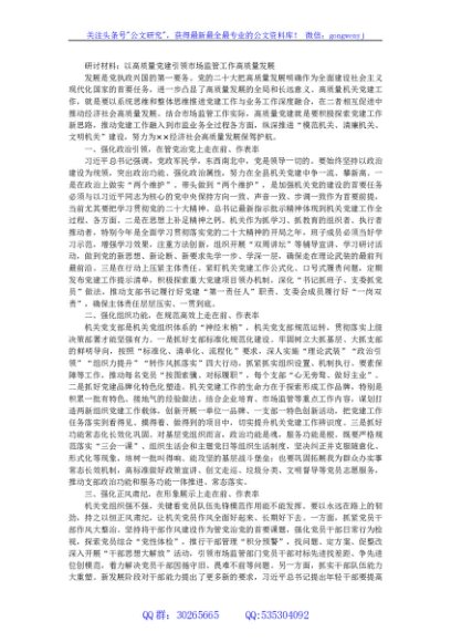 / 研讨材料:以高质量党建引领市场监管工作高质量发展