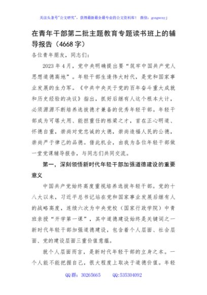 / 在青年干部第二批主题教育专题读书班上的辅导报告