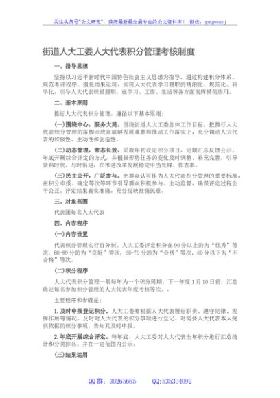 / 街道人大工委人大代表积分管理考核制度