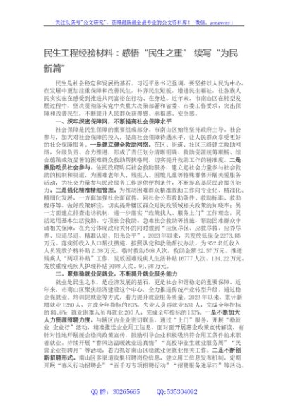 / 民生工程经验材料:感悟民生之重”续写为民新篇