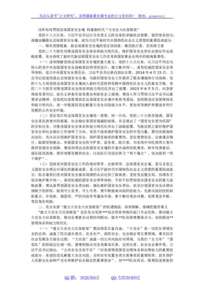 / 浅析如何贯彻总体国家安全观 构建新时代“大安全大应急框架”