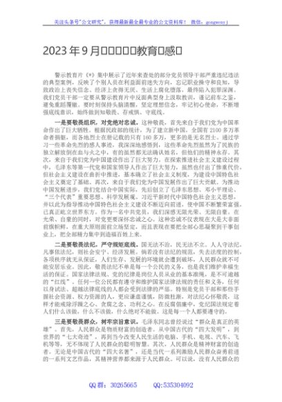/ 2023年9月份观看警示教育片感悟