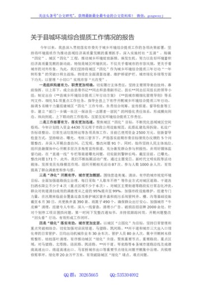 / 关于县城环境综合提质工作情况的报告