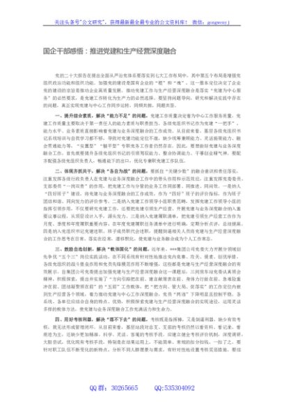 / 国企干部感悟:推进党建和生产经营深度融合