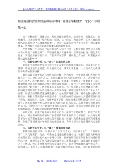 / 船舶党建抓安全实践活动经验材料:党建引领担使命 “四心”机制暖人心
