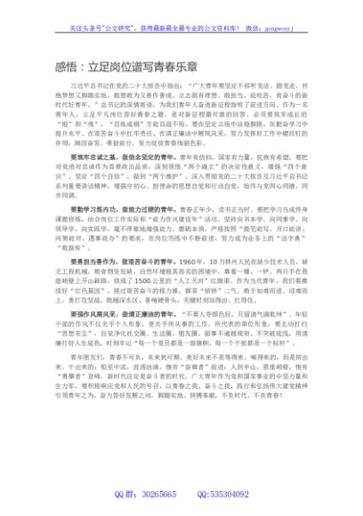 感悟:立足岗位谱写青春乐章