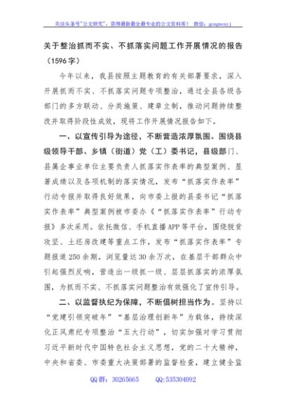 / 关于整治抓而不实、不抓落实问题工作开展情况的报告