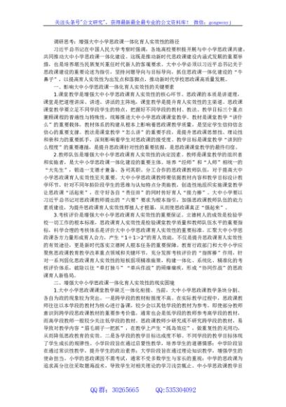 / 调研思考:增强大中小学思政课一体化育人实效性的路径
