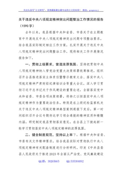 / 关于违反中央八项规定精神突出问题整治工作情况的报告