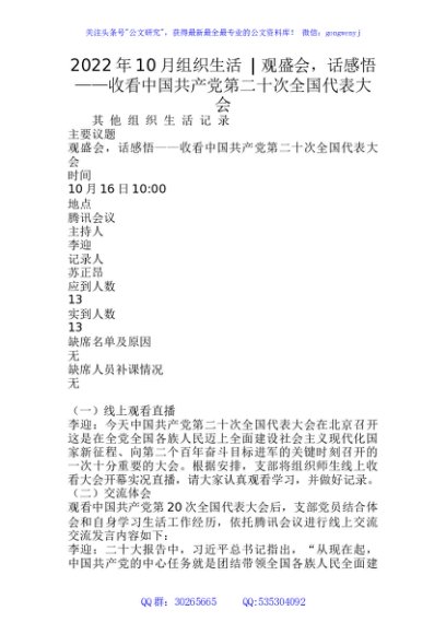 / 2022年10月组织生活 - 观盛会,话感悟——二十大