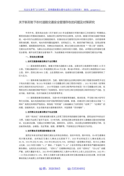 / 关于新形势下农村道路交通安全管理存在的问题及对策研究