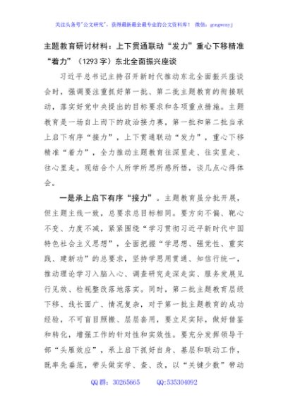 主题教育研讨材料:上下贯通联动“发力”重心下移精准“着力”——东北全面振兴座谈