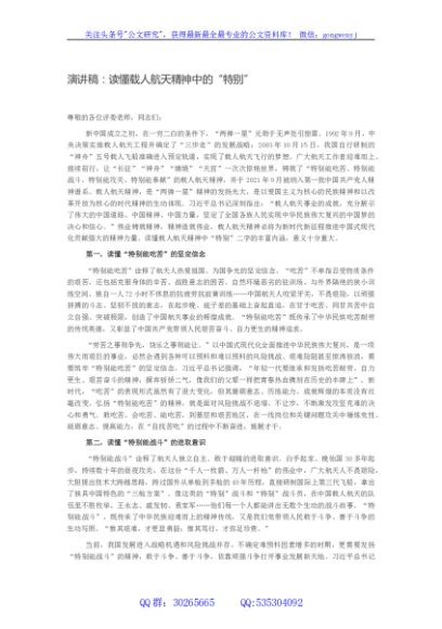 / 演讲稿:读懂载人航天精神中的“特别”