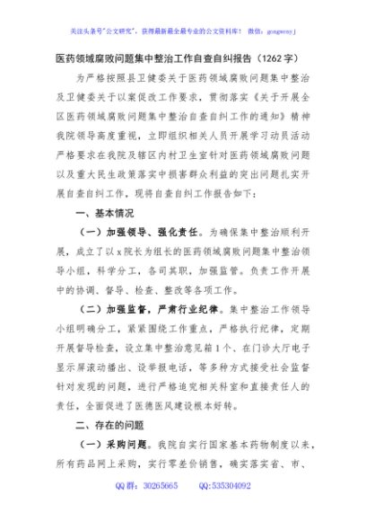 / 医药领域腐败问题集中整治工作自查自纠报告
