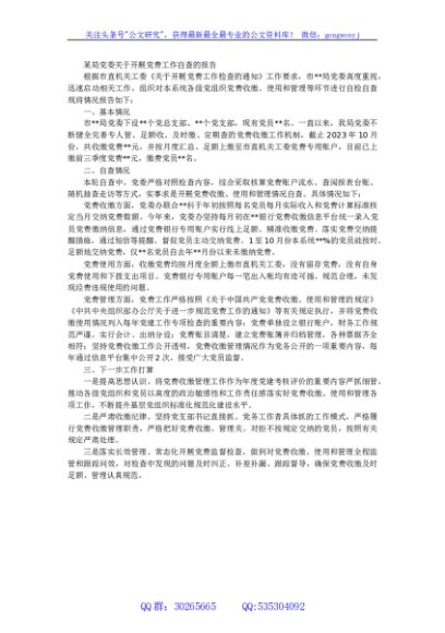 / 某局党委关于开展党费工作自查的报告