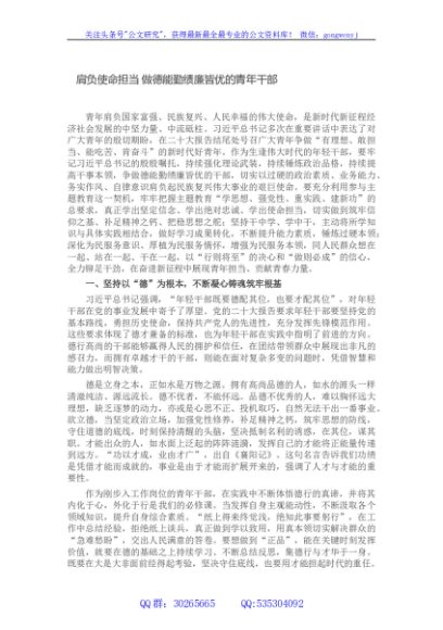 / 肩负使命担当 做德能勤绩廉皆优的青年干部