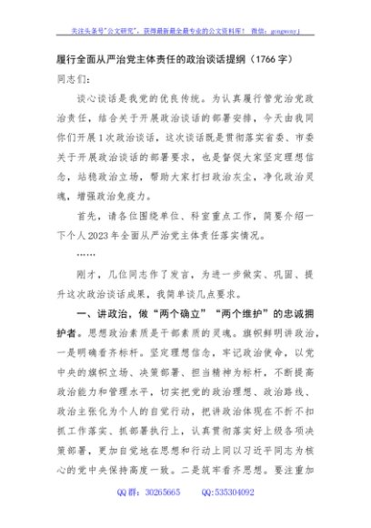/ 履行全面从严治党主体责任的政治谈话提纲