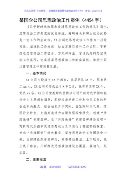 国企思想政治工作案例