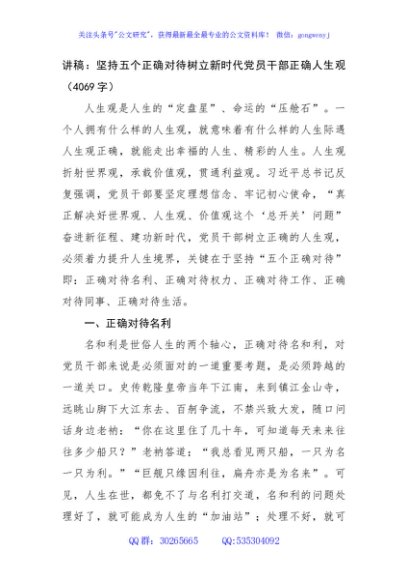 / 讲稿:坚持五个正确对待树立新时代党员干部正确人生观