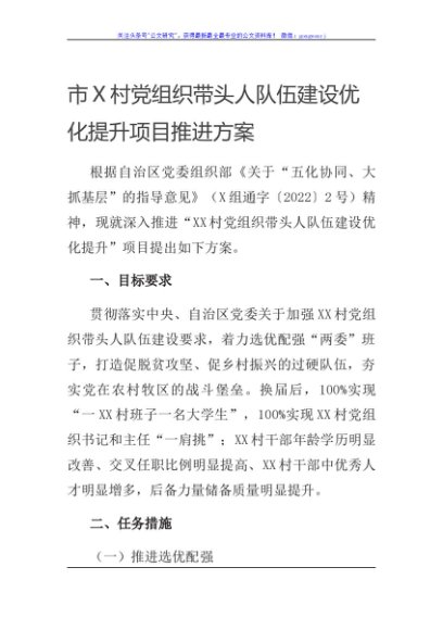 / 市X村党组织带头人队伍建设优化提升项目推进方案