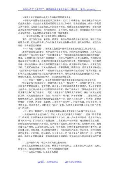 / 加强企业党支部建设与业务工作相融互促的研究思考