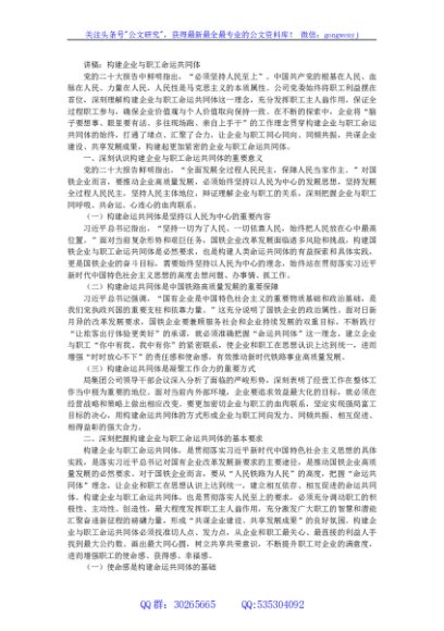 / 讲稿:构建企业与职工命运共同体