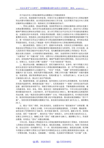 关于违反中央八项规定精神突出问题整治工作情况的报告