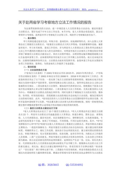 / 关于赴两省学习考察地方立法工作情况的报告