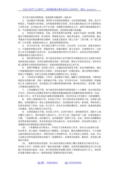 / 关于班子成员对照检查、检视剖析问题清单(100条)