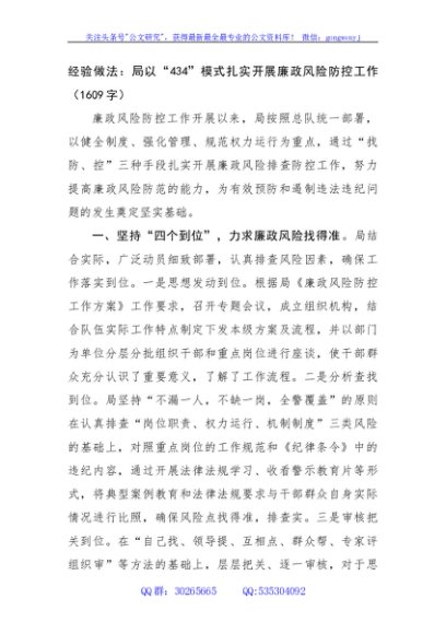 经验做法:局以“434”模式扎实开展廉政风险防控工作