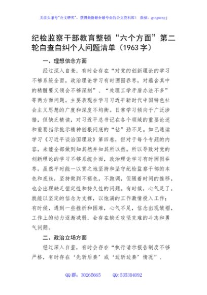 纪检监察干部教育整顿“六个方面”第二轮自查自纠个人问题清单