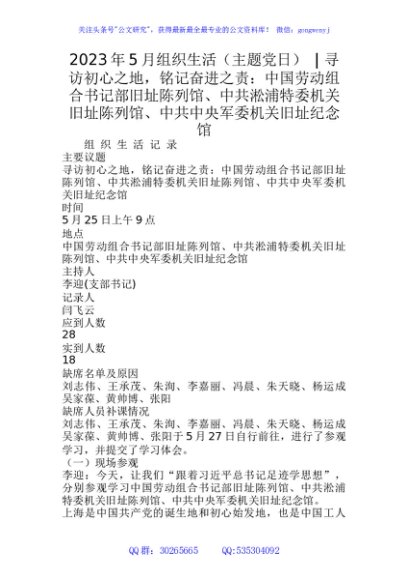 2023年5月组织生活(主题党日) - 寻访初心之地,铭记奋进之责:中国劳动组合书记部旧址陈列馆、中共淞浦特委机关旧址陈列馆、中共中央军委机关旧址纪念馆