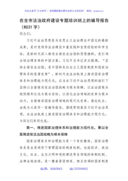 / 在全市法治政府建设专题培训班上的辅导报告