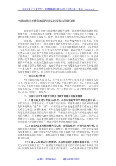 / 市局加强机关青年教育引领实践探索与问题分析