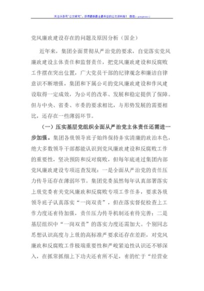 / 党风廉政建设存在的问题及原因分析(国企)
