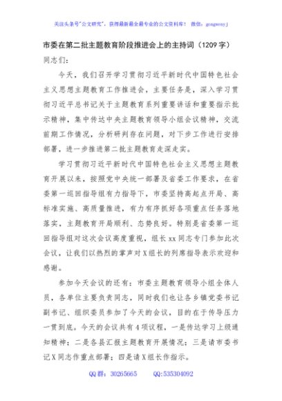 / 市委在第二批主题教育阶段推进会上的主持词