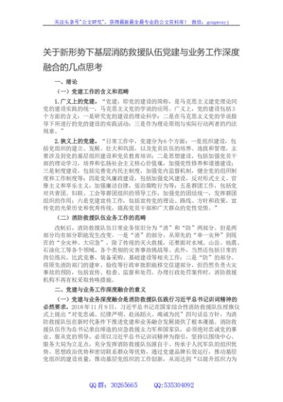 / 关于新形势下基层消防救援队伍党建与业务工作深度融合的几点思考