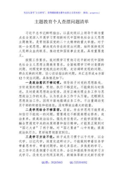 / 主题教育个人查摆问题清单