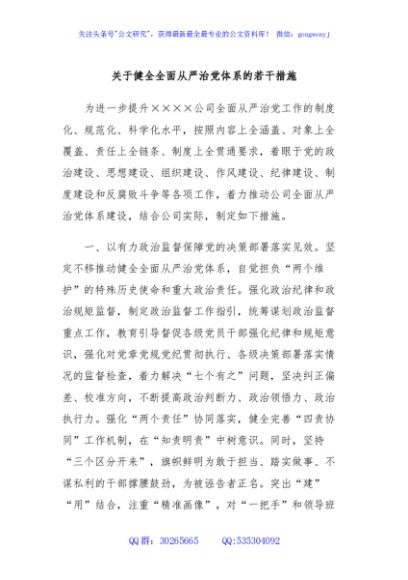 关于健全全面从严治党体系的若干措施
