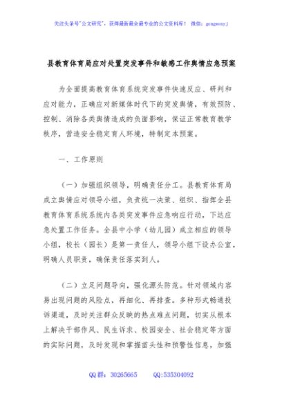 / 县教育体育局应对处置突发事件和敏感工作舆情应急预案
