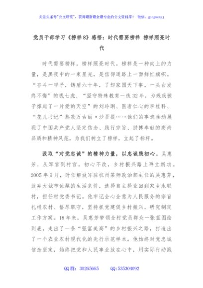 / 党员干部学习《榜样8》感悟:时代需要榜样 榜样照亮时代