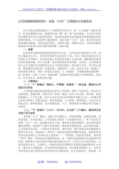 / 公司党建典型案例材料:实施“1345”工程强化大党建实效
