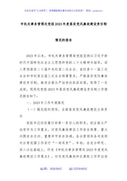 / 市机关事务管理处党组2023年度落实党风廉政建设责任制情况的报告