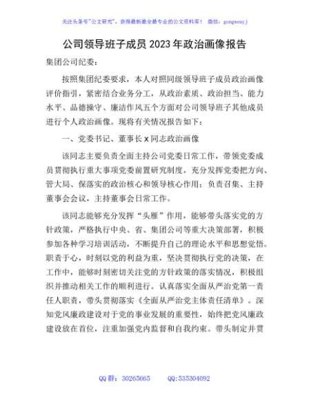 国企领导2023年政治画像报告