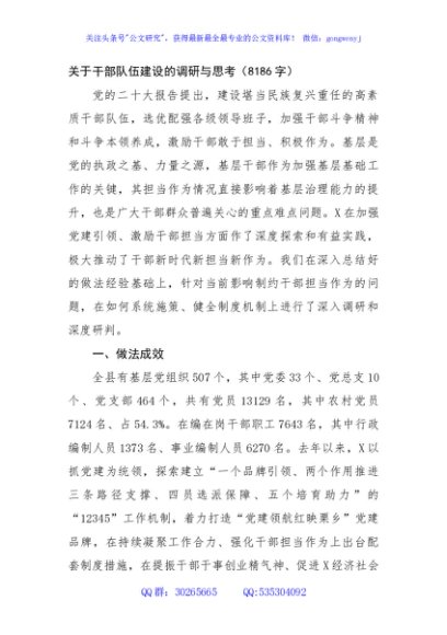 / 关于干部队伍建设的调研与思考
