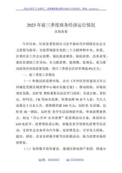 2023年前三季度商务工作情况